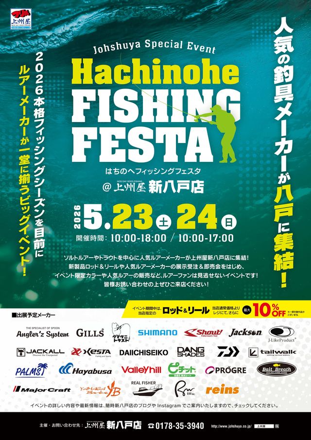 この度、上州屋新八戸店様主催「2026八戸フィッシングフェスタ」に出展させていただきます。